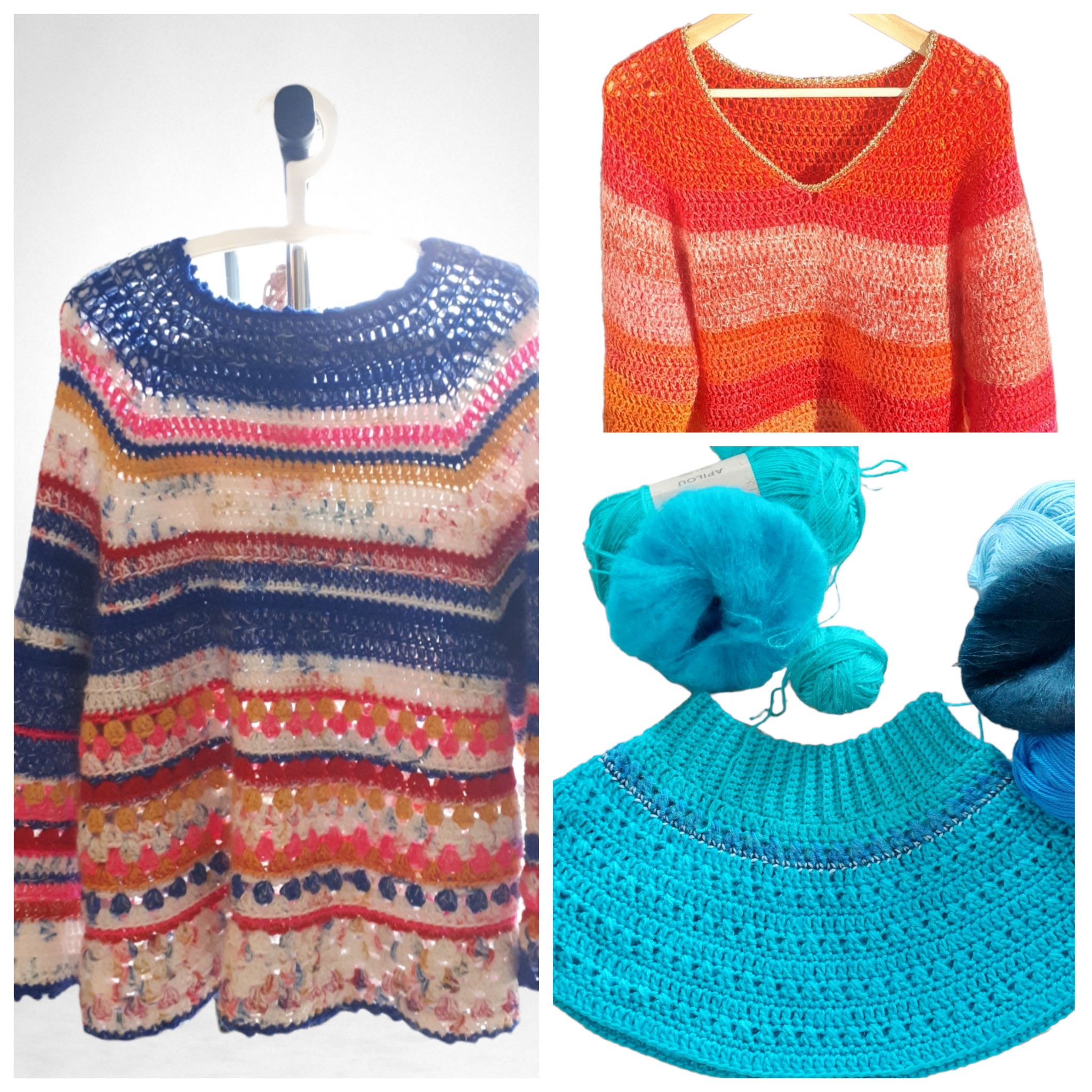 Je vous propose une méthode simple et efficace qui vous permettra de crocheter un pull sans couture en décidant vous même largeur, longueur, encolure et points.